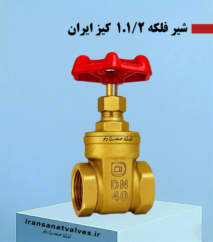 سری شیرآلات کیز ایران مدل شیر فلکه کشویی 1.1/2 اینچ رنگ برنجی